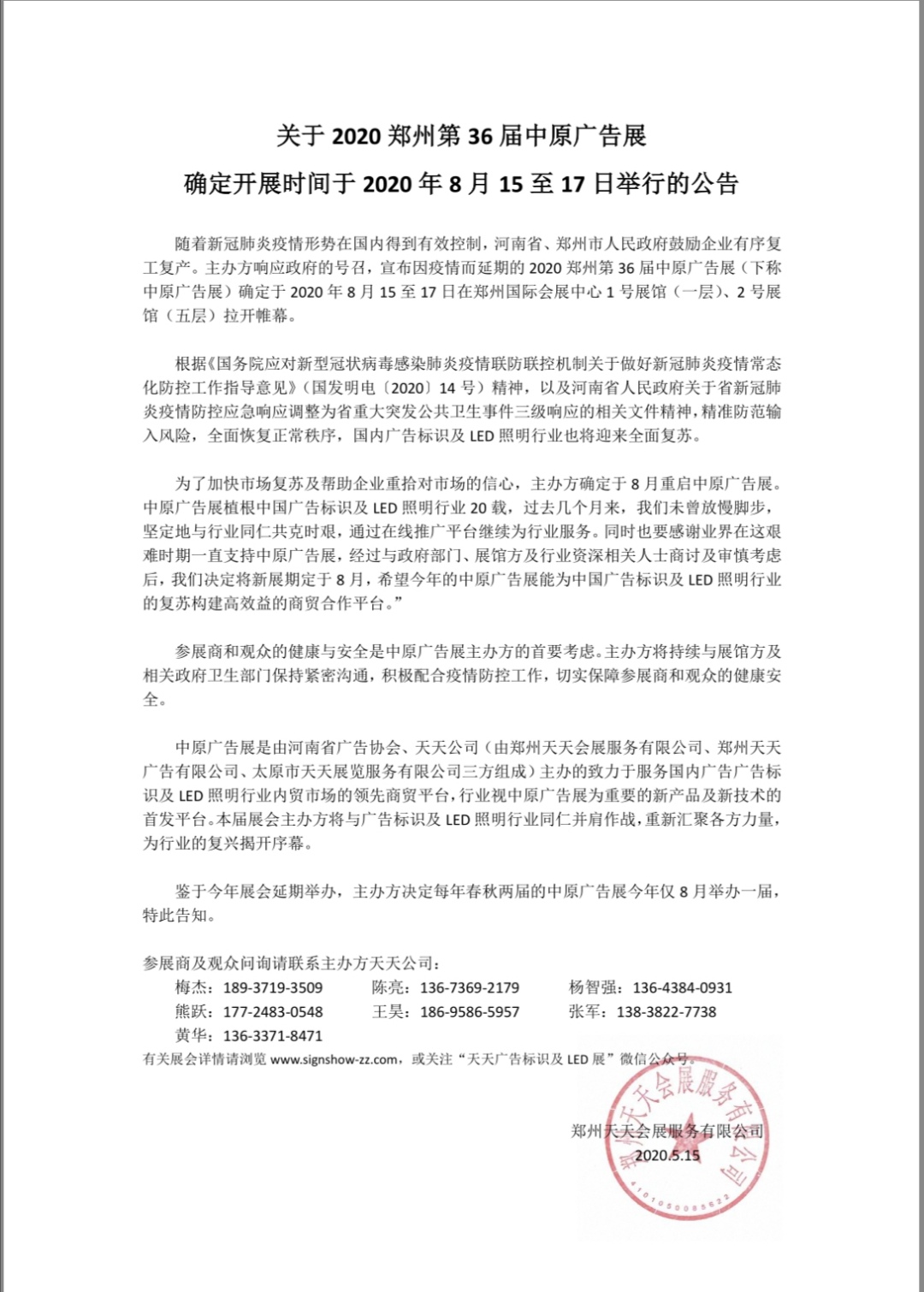 關(guān)于2020鄭州第36屆中原廣告展開展時間確定的通知